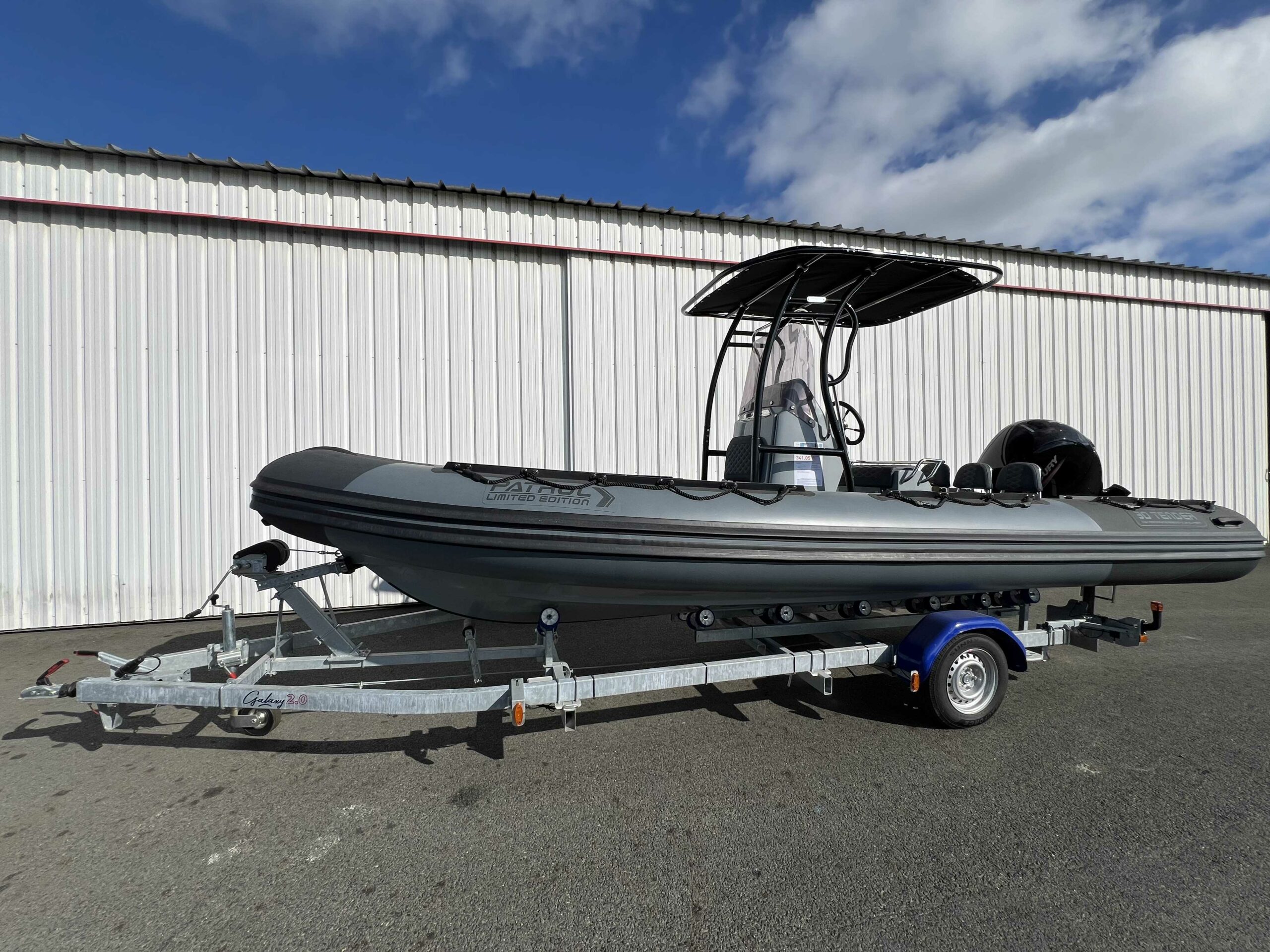 Le tarif inclus les options suivantes : Réservoir fixe de 100 L, échelle, accessoires et montage direction hydraulique, armement côtier pour 4 personnes, remorque SUN WAY GALAXY GS13 et livraison.